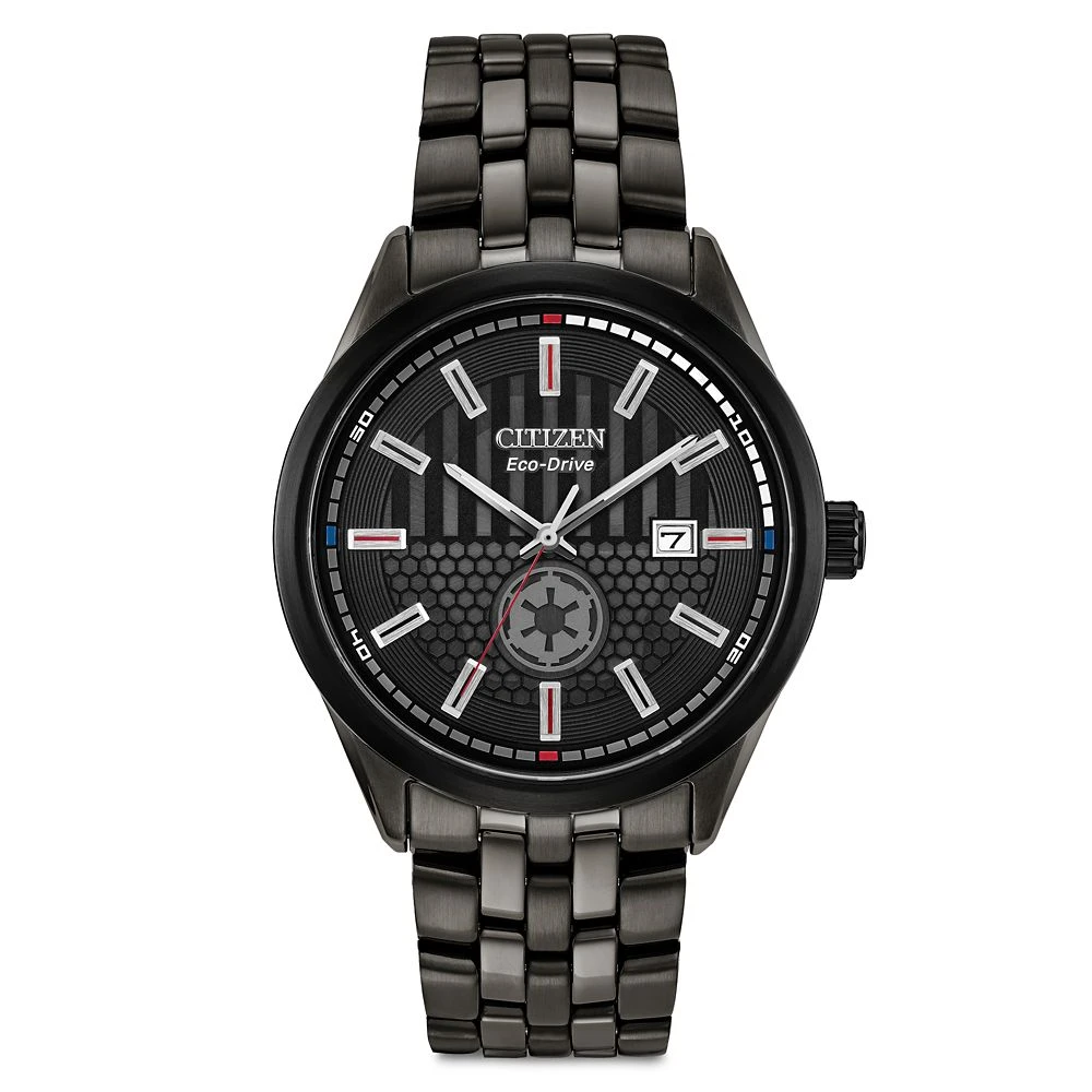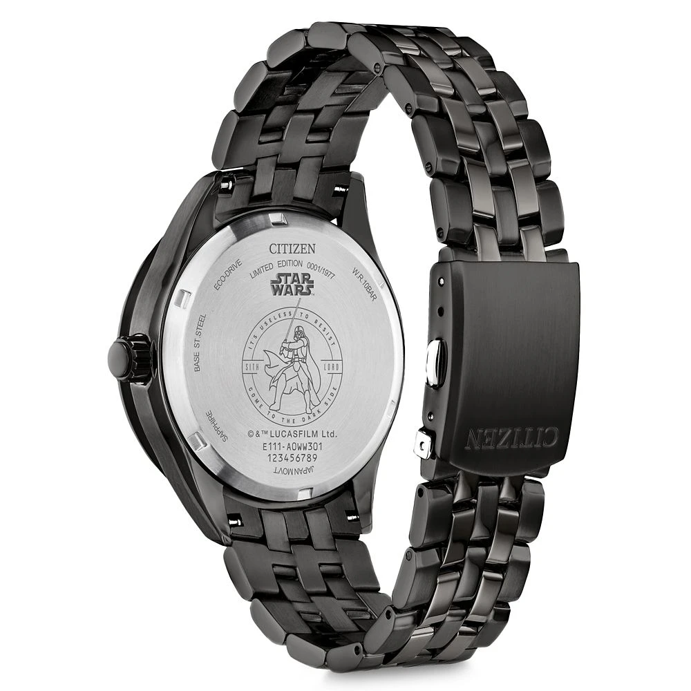 ”Join the Dark Side” with this sleek and dangerously stylish Darth Vader watch and pin set by Citizen. In the Dark Lord’s signature black, the Eco-Drive stainless steel timepiece features the Galactic Empire insignia on the glow-in-the-dark dial. Also included is a Darth Vader cloisonné pin, making this an impressive, most impressive, gift set.