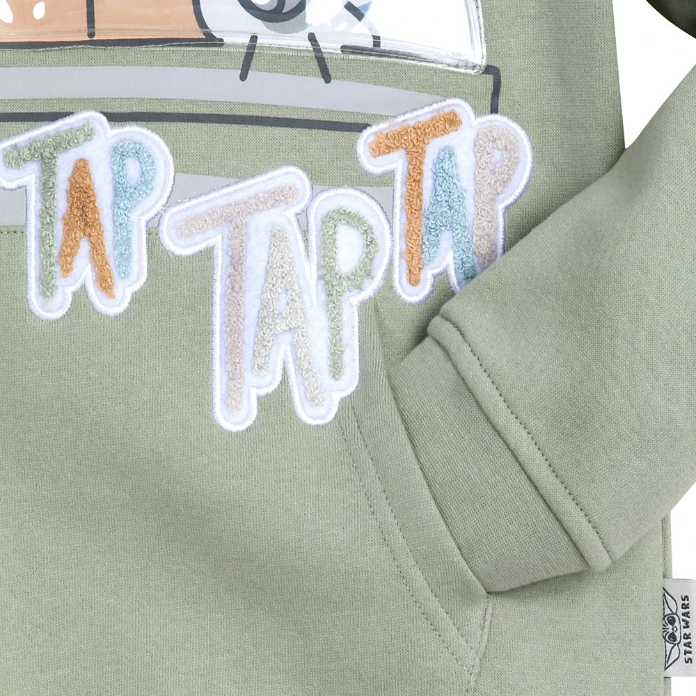 ”Tap, tap, tap.” Who’s there? It’s the cutest little guy in the galaxy featured on this Grogu pullover hoodie. Adorable screen art shows him in his pram. Embroidered appliqué lettering spells out the impossible-to-ignore message. Inspired by Star Wars: The Mandalorian, this soft and cuddly sweatshirt is the answer to chilly days and anytime you want to feel snuggly.