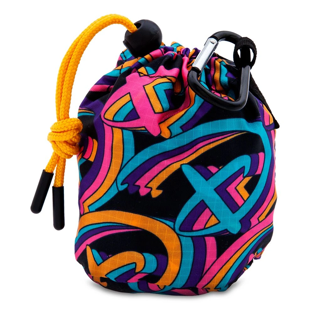 This lightweight ripstop nylon tote bag features the famous Disney “D” icon in a vintage 1970s-style pattern. With multicolor stripe straps, an easy access pocket and a detachable drawstring accessories pouch, you’ll carry the Disney magic wherever you go.