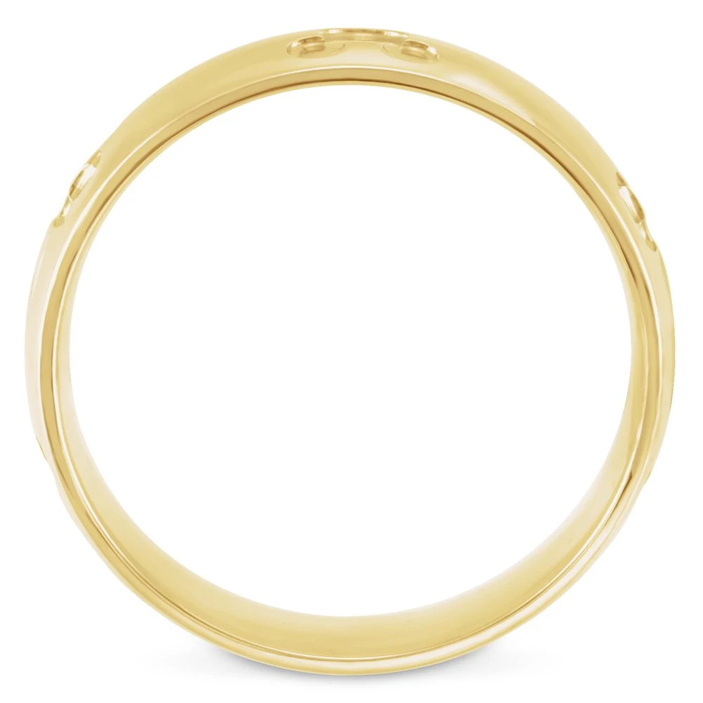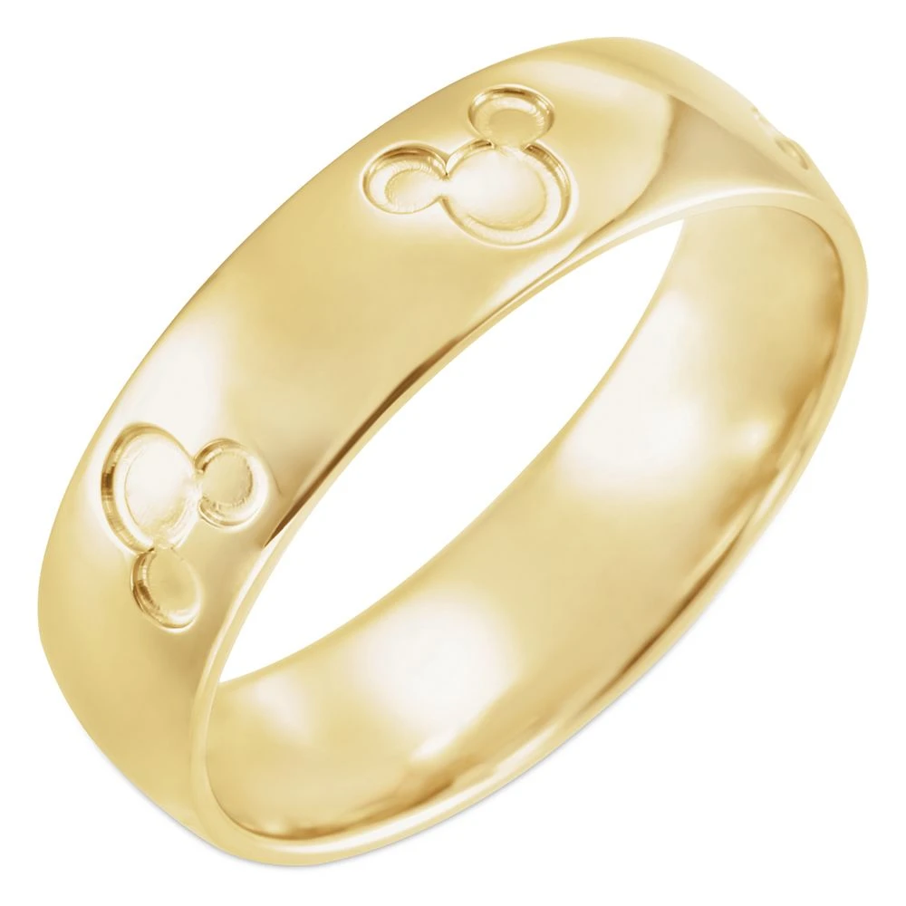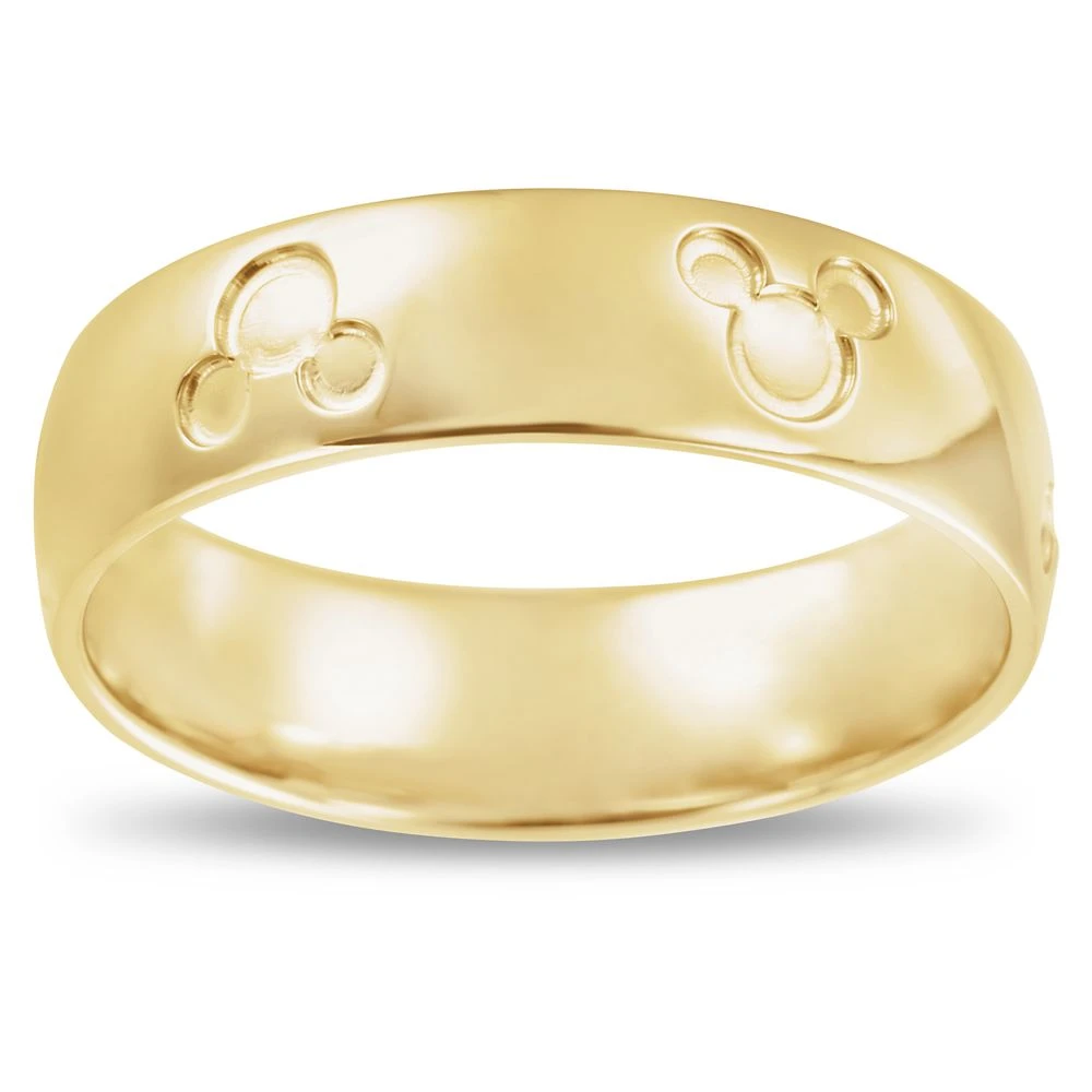 Simple elegance with a touch of Mickey are the hallmarks of this chic wedding band. Finished with a subtle satin luster of 14K yellow gold, the ring’s classic design is debossed with Mickey icons creating a partnership of timeless beauty.