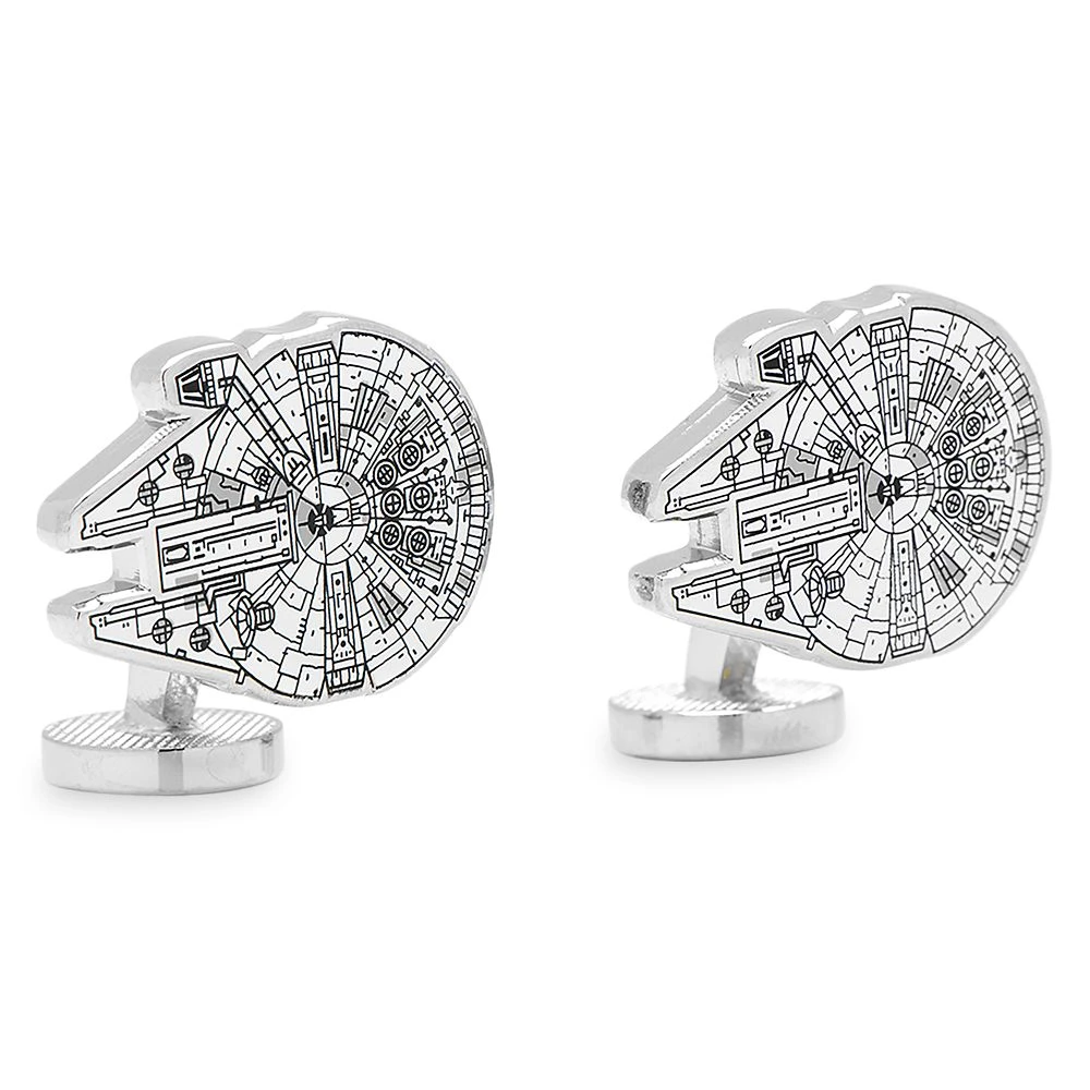 - Each cufflink features blueprint plan of the Millennium Falcon