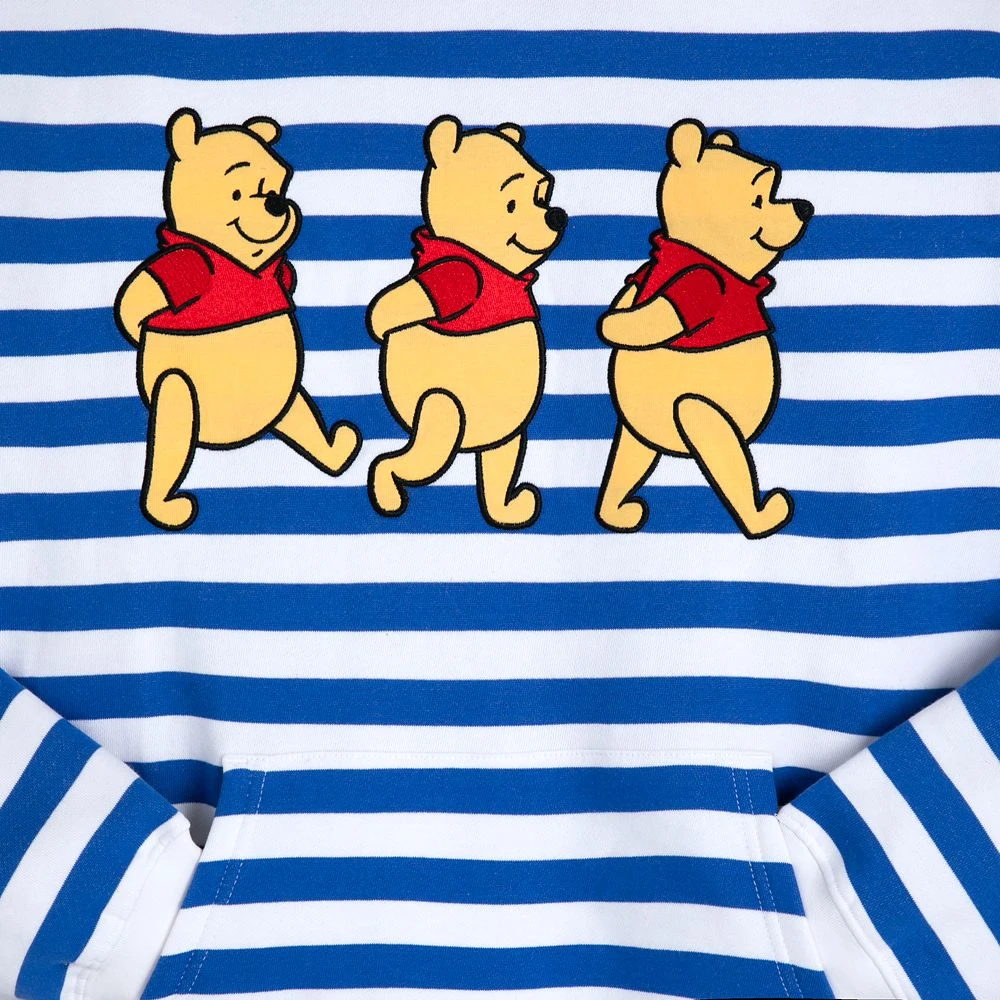 Blustery days are no bother with Winnie the Pooh and this striped pullover hoodie featuring embroidered Pooh appliqués on the front and back, a warm fleece interior, contrast ribbed trims and a pouch pocket. It’s just the thing to wear every ”windsday” or any day.