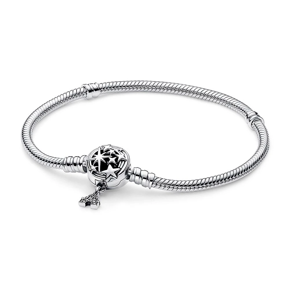 Make your favorite Disney Parks memories last with this snake chain bracelet from Pandora. Crafted in sterling silver, the bracelet can be styled with 16-18 of your favorite charms–and features an openwork clasp with different star shapes. For added movement, the clasp has a dangling Fantasyland Castle with extra sparkle. It’s the perfect piece to take home to keep treasured memories by your side.