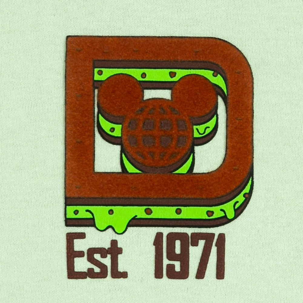 - Mickey Mouse ice cream sandwich inspired ”D” icon on chest with ”Est. 1971” text