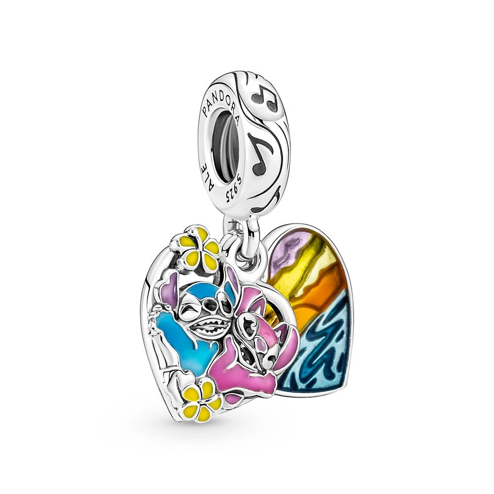 Inspired by family ties and romantic love, the Stitch and Angel Ohana Double Dangle Charm from Pandora features a rainbow of purple, blue, yellow, and black enamel to create a tropical vibe. Stitch and Angel are captured in a playful pose inside an openwork heart. Lilo & Stitch‘s famous quote ”Ohana means family” is engraved on a heart dangle that also features a transparent enamel sunset reminiscent of Hawaii, Stitch’s home. Add it to your Disney collection as a reminder of the people and places that are dear to you.